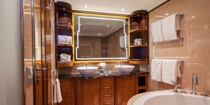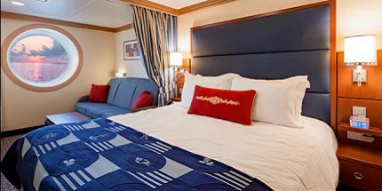 Zariadenie kajút: dvojlôžková queen posteľ (matrace Posturepedic Premium Plush, bielizeň z egyptskej bavlny), kvalitné uteráky, skriňa, kúpeľňa so sprchou, vaňou a WC, sušič na vlasy, kozmetika H20+ Spa (šampón, kondicionér a telové maslo), obývacia časť so sofa a stolíkom, oddeliteľná závesom, skriňa, 22 palcová plochá Tv, bezpečnostná schránka, telefón s priamou linkou, iPod stanica, veľké zrkadlo, minibar, regulovateľná klimatizácia.