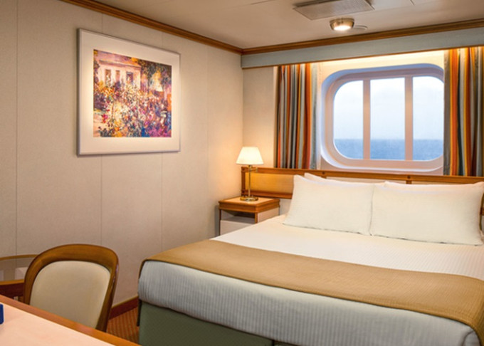 | OW - Vonkajšia kajuta / obmedzený výhľad 17 m². Neotvárateľné okno s obmedzeným výhľadom. Max 2 osoby. | 1 842 € 921 € za osobu | ||