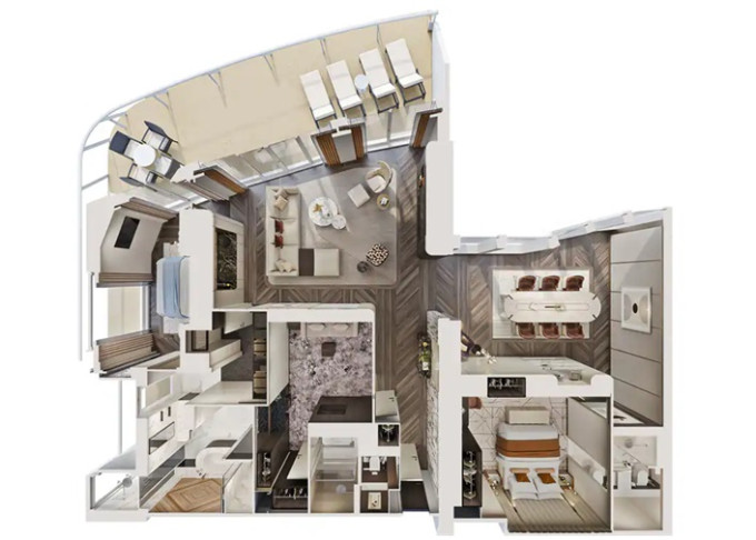 H2 - The Haven Deluxe Owner's Suite 197 m² / balkón 45 m². 18. paluba vpredu. Max 6 osôb. Výhody The Haven. 41 230 € 20 615 € za osobu