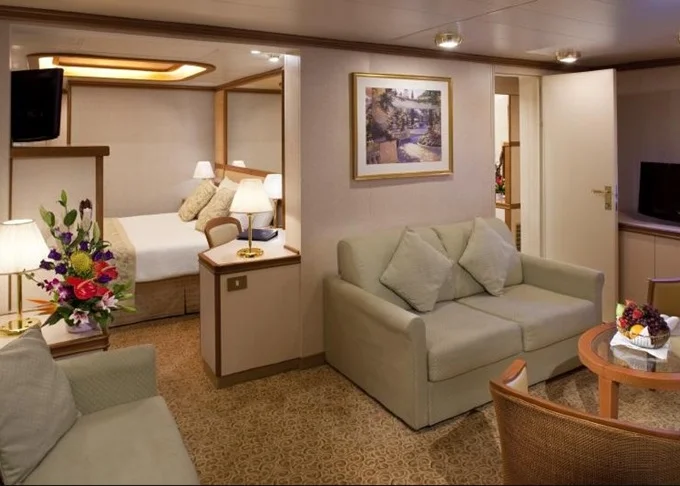 S6 - Vista Suite s balkónom 45 m² (vrátane balkóna). Max 3-4 osoby (gauč + horné lôžko). Výhody Suite. 5 142 € 2 571 € za osobu