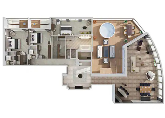 | H1 - The Haven Garden Villa - 3 spálne 395 m² / balkón 155 m². 14. paluba - stred. Max 8 osôb. Výhody The Haven. | 31 670 € 15 835 € za osobu |