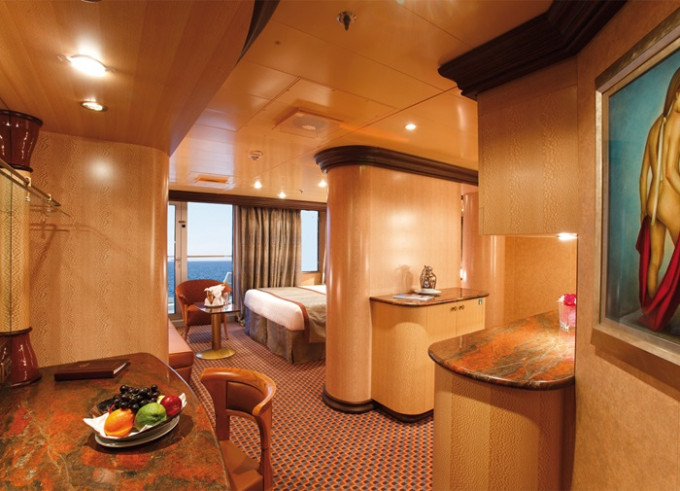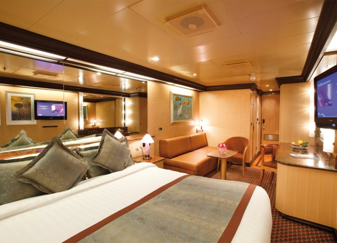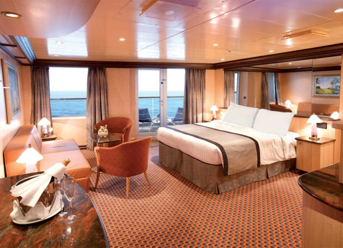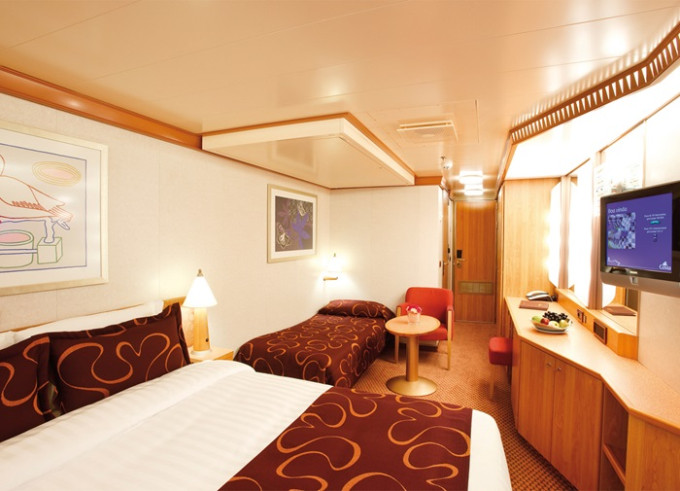 • Ubytovanie v kajute vybranej kategórie. Základné vybavenie: kúpeľňa s WC a sprchovacím kútom, 2 lôžka spojiteľné do manželskej postele, skrine, nočné stolíky, toaletný stolík a stolička, nastaviteľná klimatizácia, interaktívna satelitná TV s plochou obrazovkou, trezor, sušič na vlasy, uteráky a posteľné prádlo, Wi-Fi pripojenie (za poplatok), 24/7 kajutová služba (za poplatok).