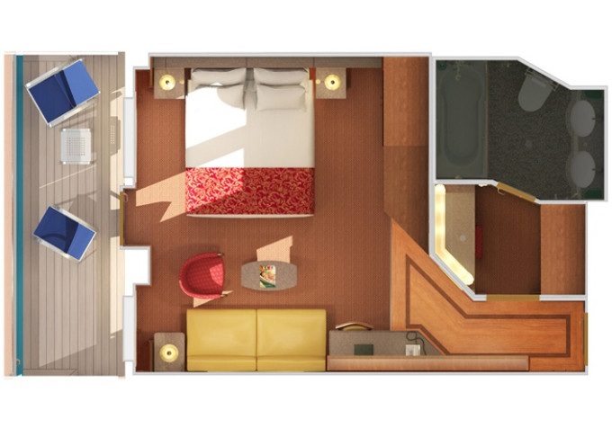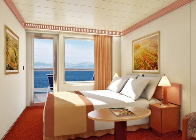 9C - Kajuta s balkónom Premium Vista 17 m² + rohový balkón 7 m². 6,7,8. paluba vzadu. Max 2 osoby. 2 776 € 1 388 € za osobu