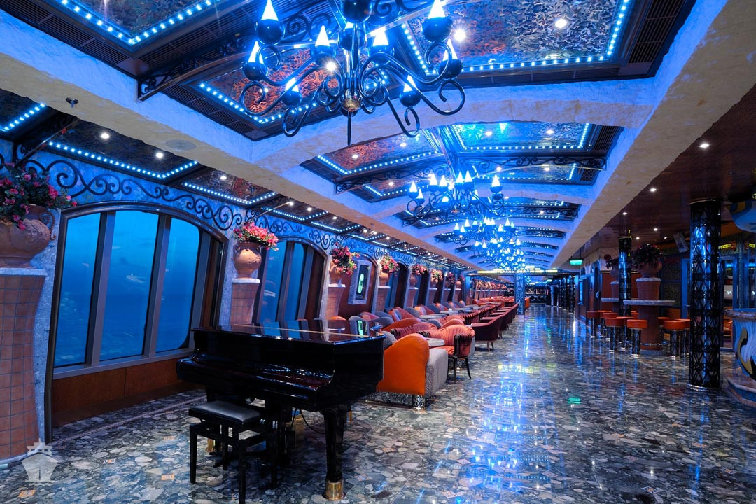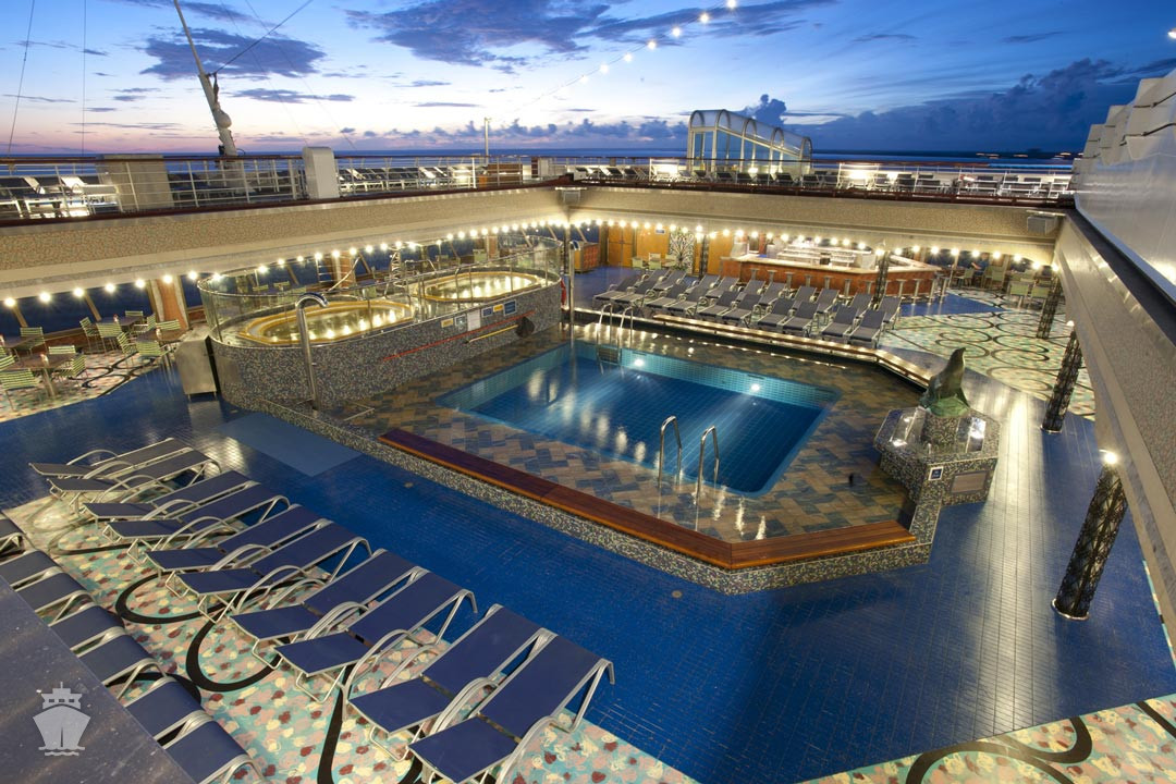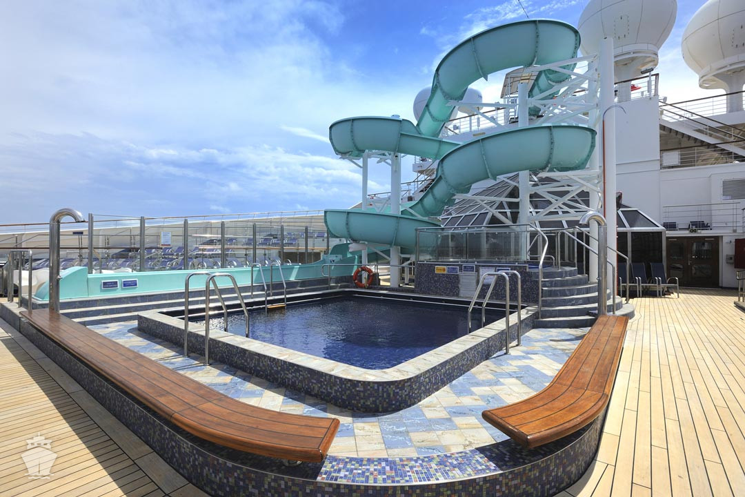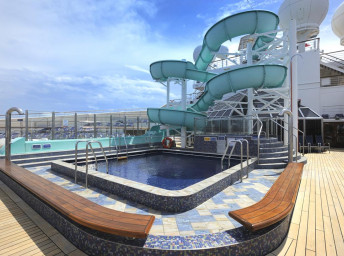• Využívanie fitness centra, sauny, bežeckej dráhy, bazénov, víriviek, tobogánov a vodného parku (na vybraných lodiach), mini golf, basketbal, volejbal, stolný tenis, knižnica