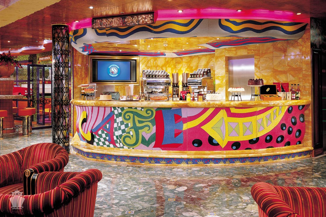 • Čapovaná voda, limonáda, ľadový čaj, káva, čaj, kakao z automatov v hlavnej reštaurácii Main Dining Room a bufetovej 24/7 reštaurácii Lido