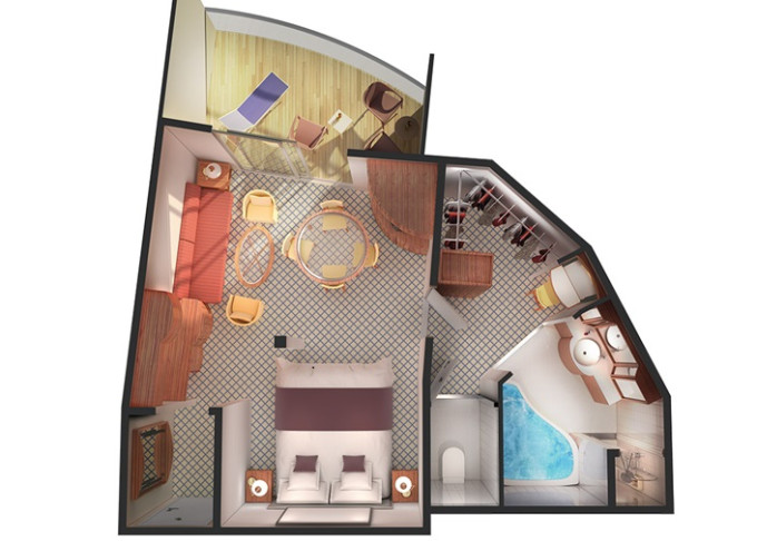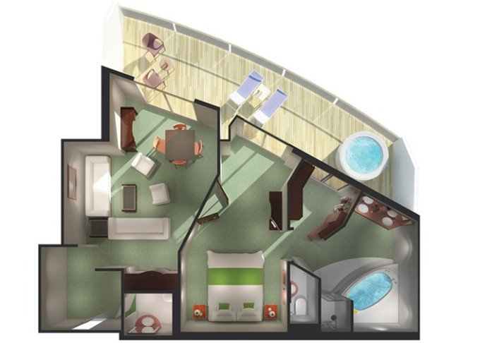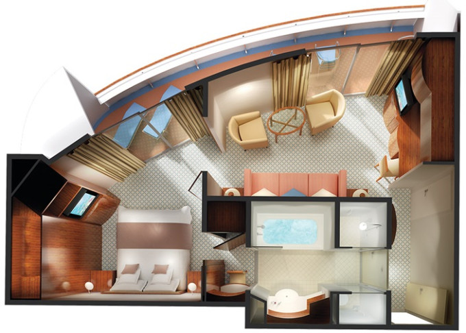 | SA - Owners Suite 76 m² / balkón 23 m². Vírivka. 11. paluba - vpredu. Max 4 osoby. Výhody Suite. | 21 788 € 10 894 € za osobu | ||