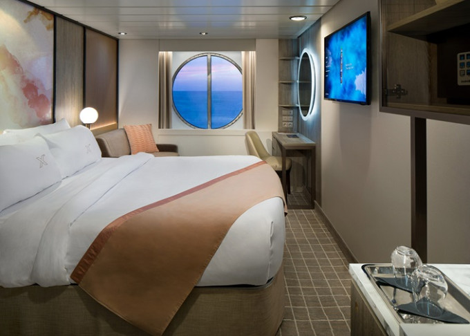 - Kajuty sú umiestnené v blízkosti lodného Spa. K ich vybaveniu patrí posilnený systém vzdušnej filtrácie, posteľ Queen-Size (v kategóriách Edge King-Size), veľké zasúvacie sklenené dvere, exkluzívne posteľné prádlo eXhale®, veľkorysé skladovacie priestory.