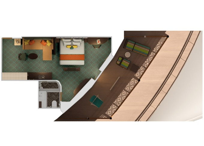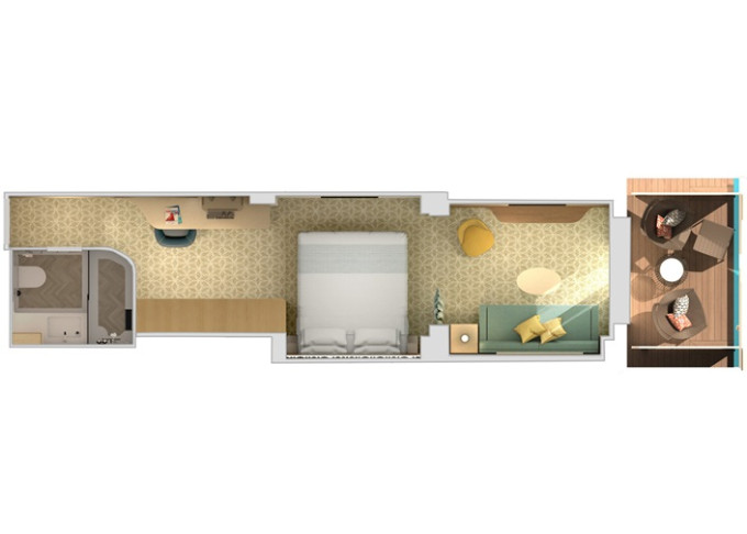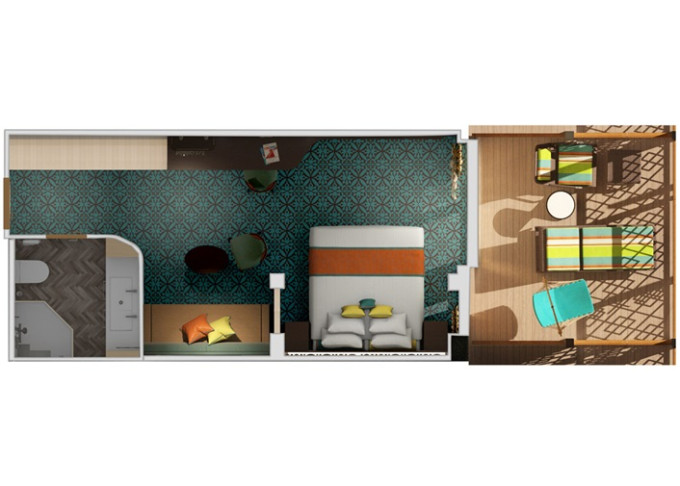 | HS - Suite Havana Cabana 28 m² + vonkajšie patio 8 m². 8. paluba vpredu. Tropický štýl, vstup do exkluzívnej zóny Havana. Výhody Suite. Táto kajuta je určená pre hostá od 12 rokov. | 4 082 € 2 041 € za osobu | ||