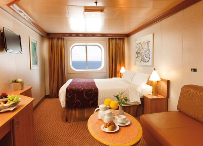 • Ubytovanie v kajute vybranej kategórie. Základné vybavenie: kúpeľňa s WC a sprchovacím kútom, 2 lôžka spojiteľné do manželskej postele, skrine, nočné stolíky, toaletný stolík a stolička, nastaviteľná klimatizácia, interaktívna satelitná TV s plochou obrazovkou, trezor, sušič na vlasy, uteráky a posteľné prádlo, Wi-Fi pripojenie (za poplatok), 24/7 kajutová služba (za poplatok).