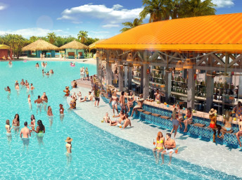 • Floating AquaBanas (12 kabín na prenájom) poskytujú osem miest na sedenie, pevný stôl, protišmykové povrchy a priamy prístup do Starfish Lagoon. Chatky sú zoskupené okolo polostrova s ​​vyhradeným nápojovým barom